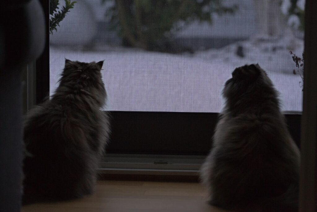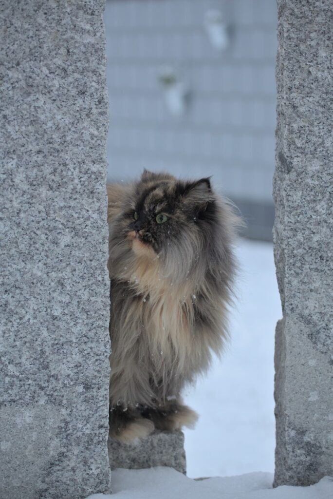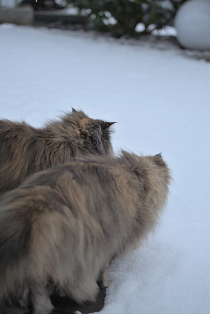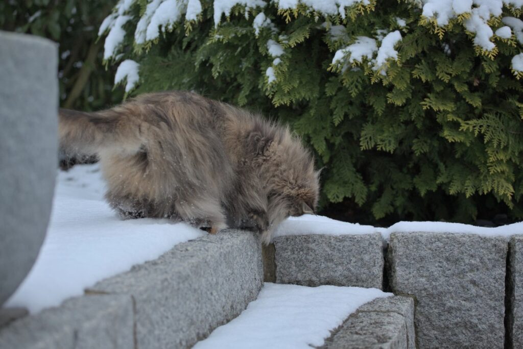 Leichte Wintergefühle 13. Januar 2024CarrieGartenHausKatzeNaomiSchneeWinter Hinter Gittern. Schnee untersuchen. Scheint kalt zu sein. Naomi beim Nase pudern. Fertig gepudert.